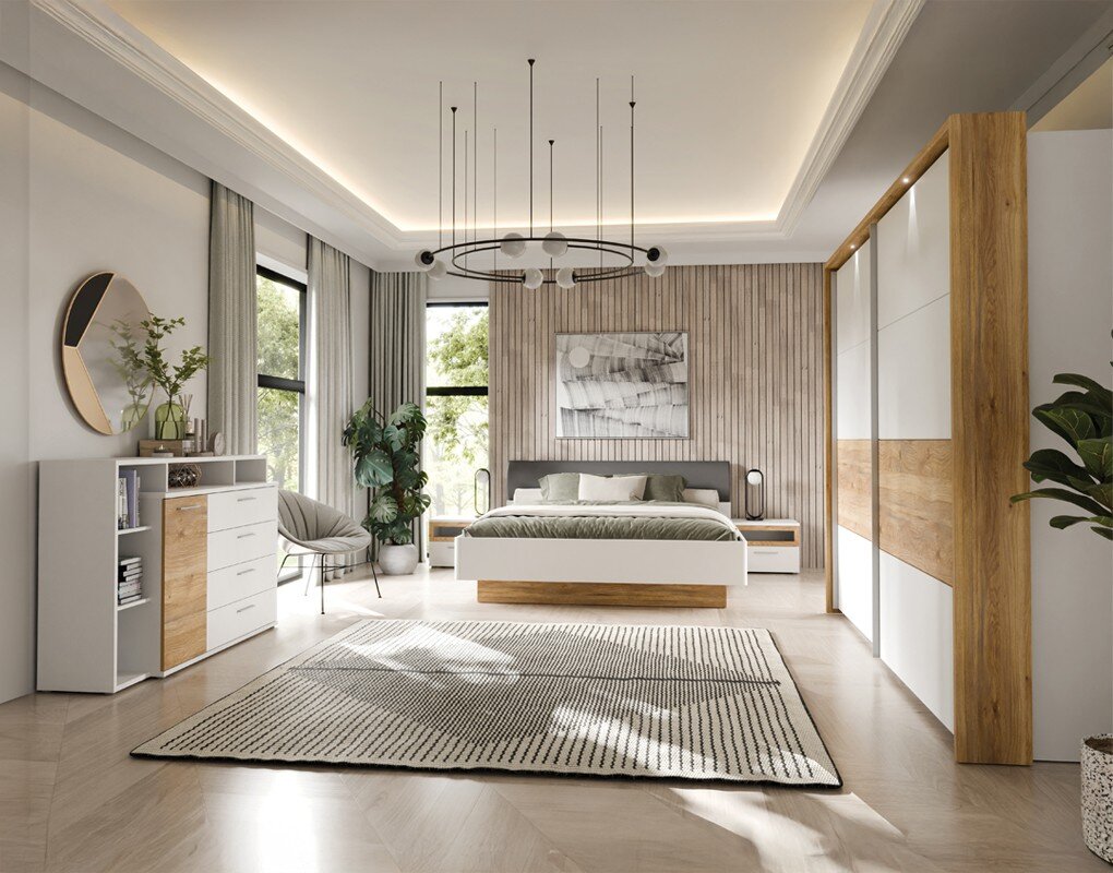 Подходящи са дори за по-малки спални, а елегантната комбинация от бял цвят и дъб Маувела придава уют и стил на интериора.